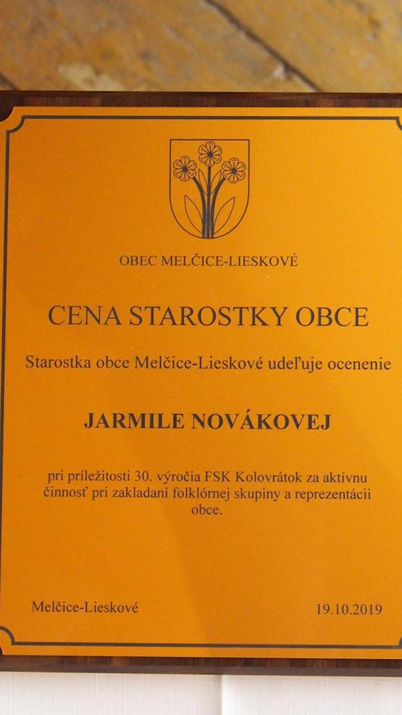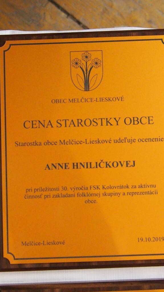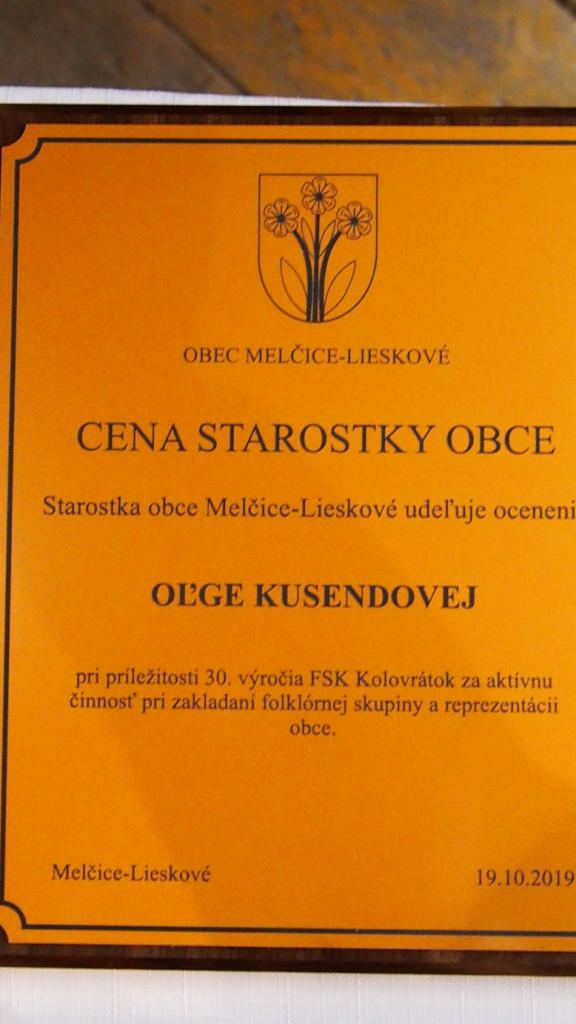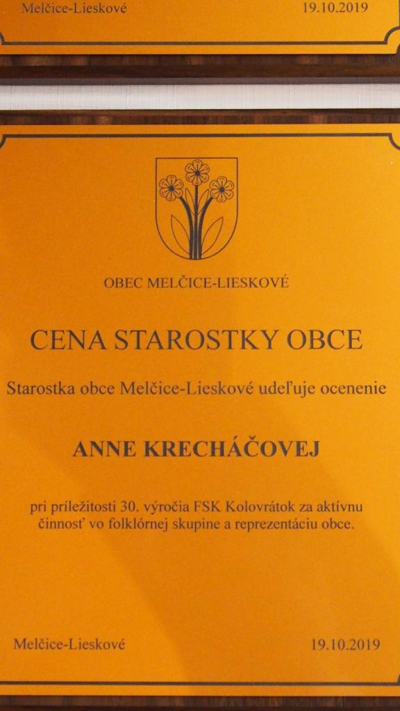 Dňa 19. októbra 2019 oslavoval v obci Melčice-Lieskové FS Kolovrátok 30. výročie ich založenia. Súčasťou osláv bolo aj ocenenie starostky obce zakladajúcim členkám skupiny a členkám, za prínos a aktívnu reprezentáciu obce.