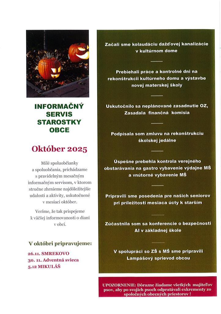 Informačný servis obce - október 2025