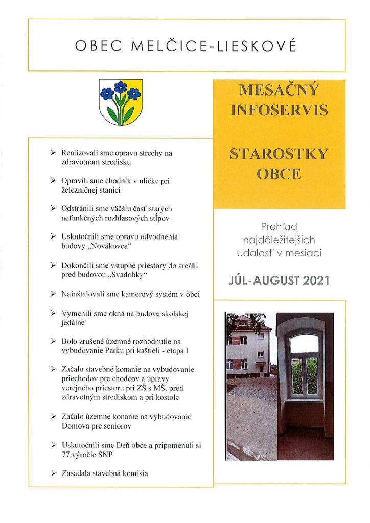 Ponúkame Vám prehľad najdôležitejších informácií v mesiacoch JÚL, AUGUST 2021.